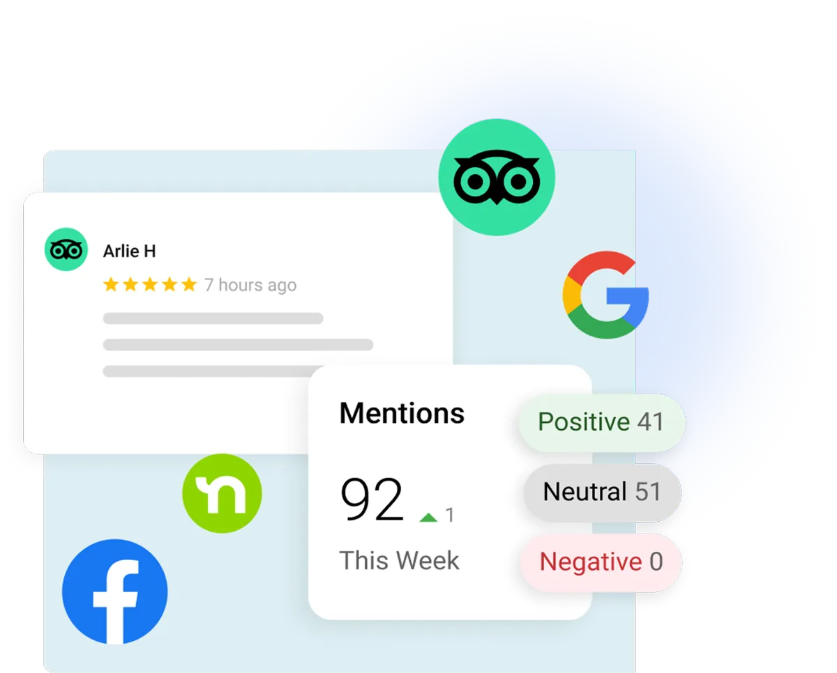 Monitor all of your reviews and ratings on Google, Facebook, Nextdoor and TripAdvisor in one central place.